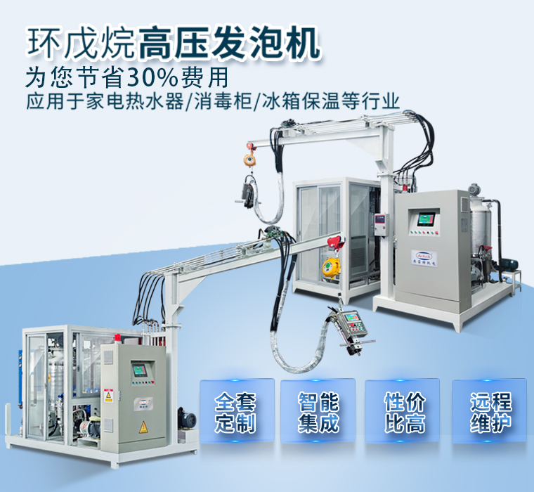 弗雷特環戊烷高壓發泡機已廣泛應用于冰箱冷柜、消毒柜、制冰機、熱水器、太陽能、防盜門、車庫門、家具仿木、記憶枕、廚房柜、商用展示柜、玩具、建材、工程屋面墻體隔音、屋頂隔熱、保溫板材、管道保溫、汽車內外飾件、聚氨酯緩沖發泡包裝、體育用品、鞋業制造等行業。