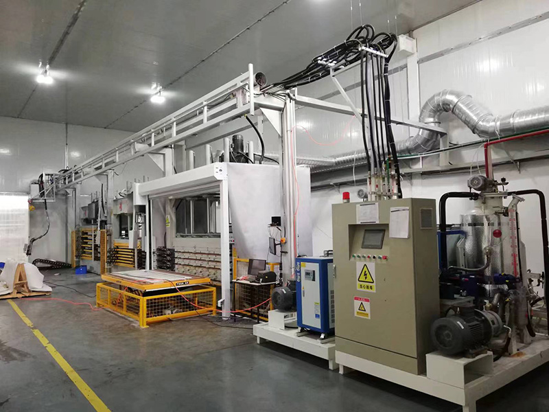 懸掛式多功能自動化發泡生產線設備主要用于冰箱冷柜、聚氨酯裝飾板、保溫箱、保溫瓷磚板、門內部填充等箱體聚氨酯產品的發泡。