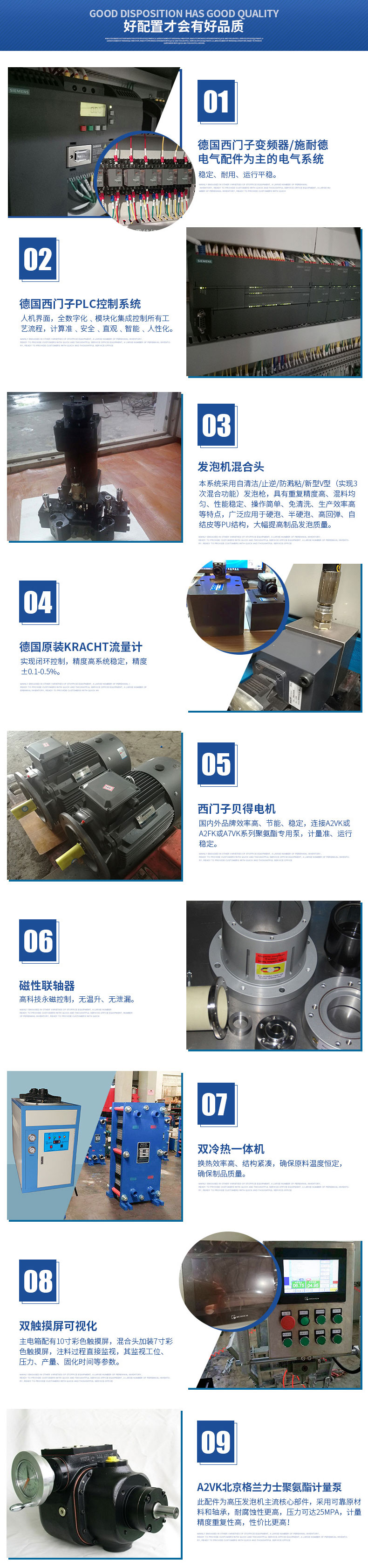 混合裝置:本系統(tǒng)采用自清潔/止逆/防濺粘/新型V型(實現(xiàn)3次混合功能)發(fā)泡槍,結構美觀、操作方便。配合西門子聚氨酯專用泵,注射準,混合效果很好。